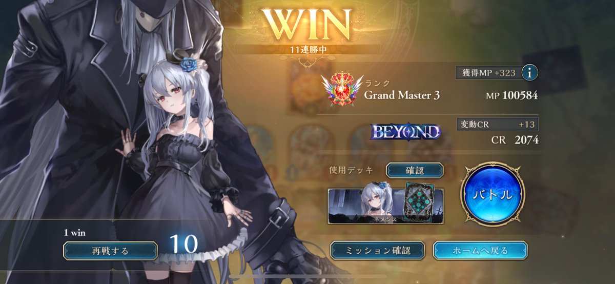 うおおおおおエルフでULTIMATE、7連勝!! 1300~1500帯はエルフが苦手とするビショップが多くて勝てなかったのでむしろ1700付近の方が勝てる? 疾走で一気に9~13点くらい出して勝つ事が多いけどピン刺しのローズクイーンもめっちゃ偉い!!