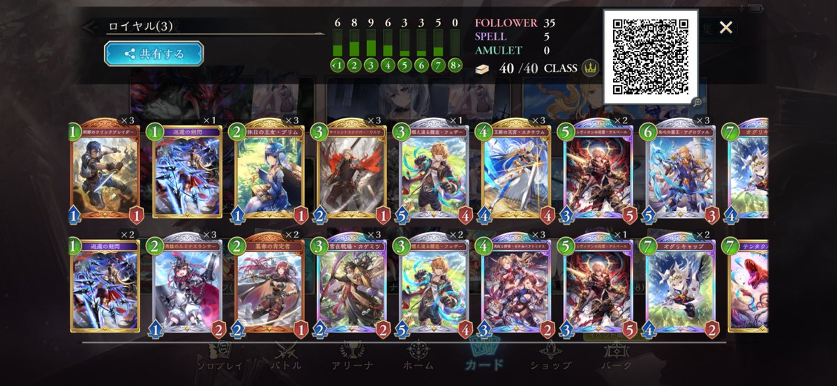 少し前に10連勝したシャークソルジャー入りの疾走ランプドラゴンでアルティメット到達🐉🐲 ルリアで持ってこれるし、警戒して守護貼られても貫通するし、スタッツも偉いという事で採用中。 #シャドバWB #シャドバビヨンド #シャドウバース #シャドバ
