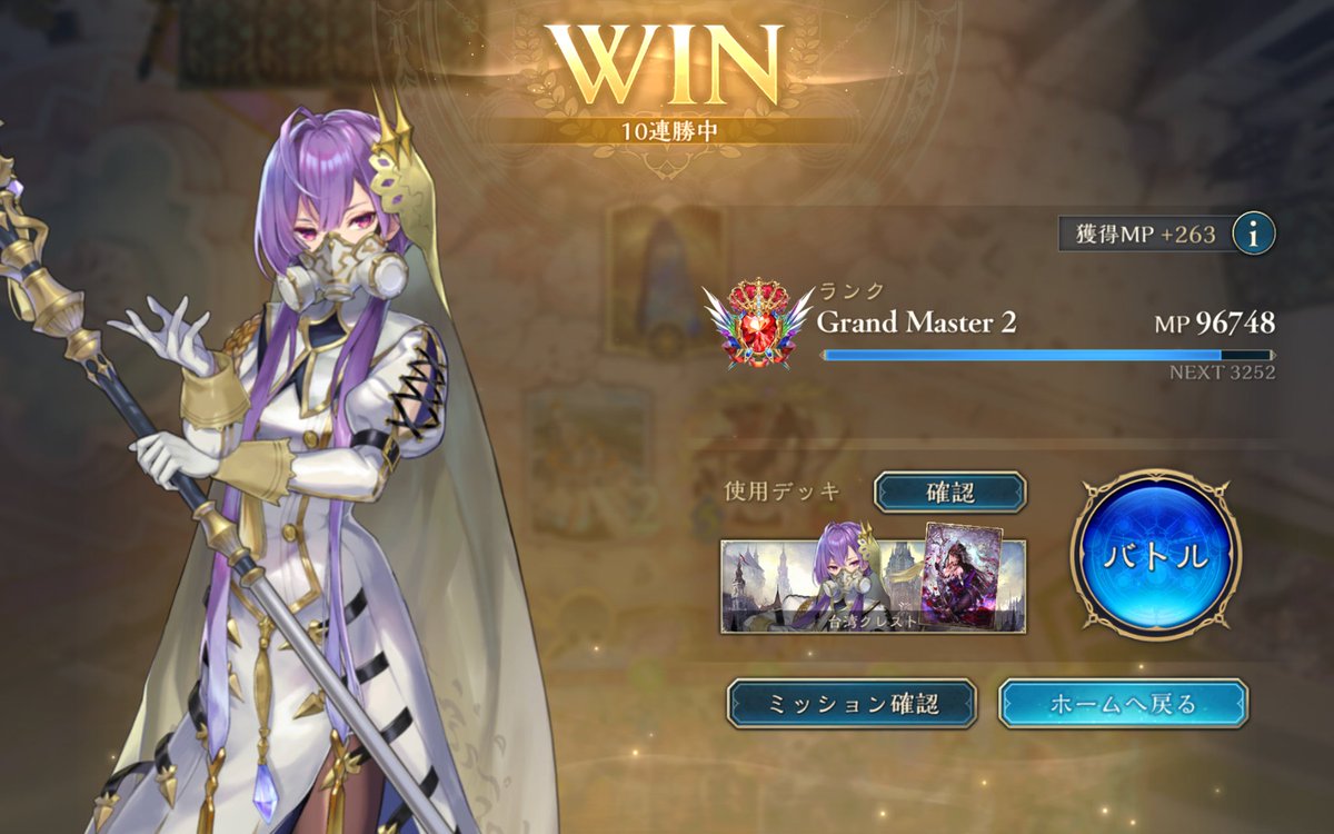 エピック帯だけど、見様見真似でAF人形ネメシス作って初めて使ってみたら11連勝してて草 カルラ3枚生成しないと作れなくてムカついたから、2枚採用に抑えてノアやらストリングアサルトやら積んでたけど、レート低くてビショ割合少なめの内はこっちの方が強そう #シャドバWB