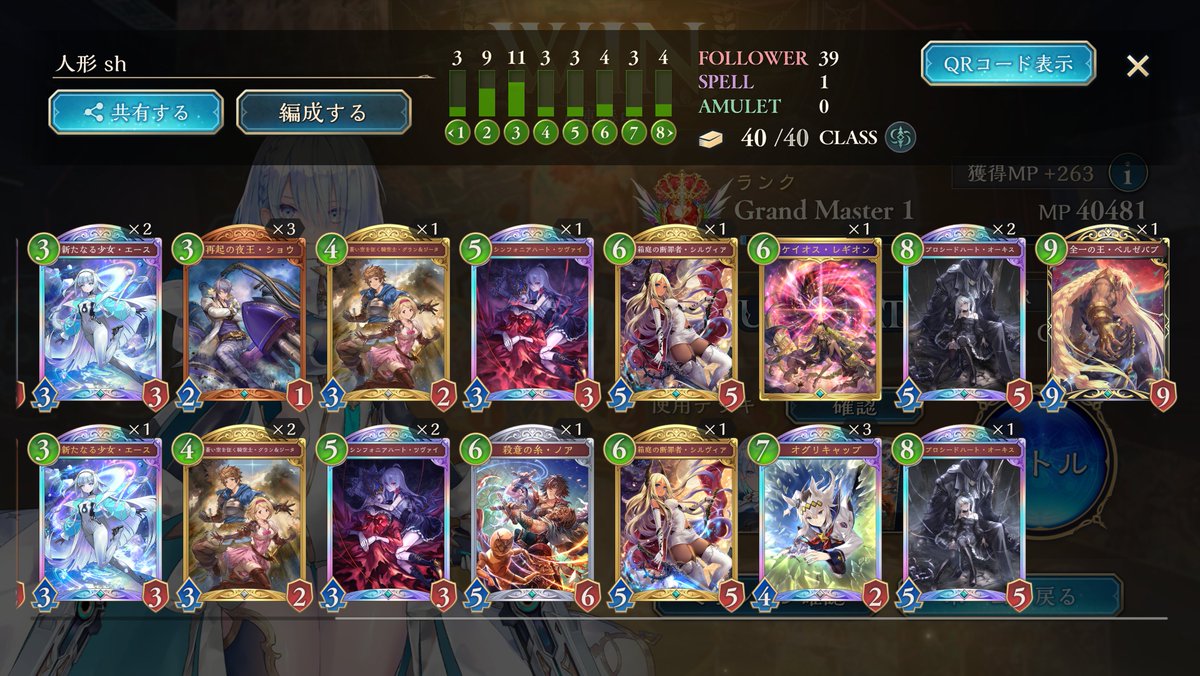ギリッギリでダイヤグラマス到達 人形ネメシスで最大11連勝2回 残り6200pでシーズン変わってルビーまで落とされた時は終わったと思いました… #シャドバ