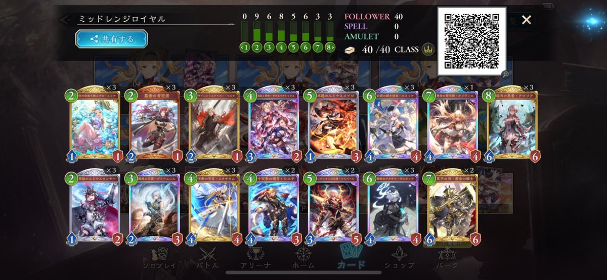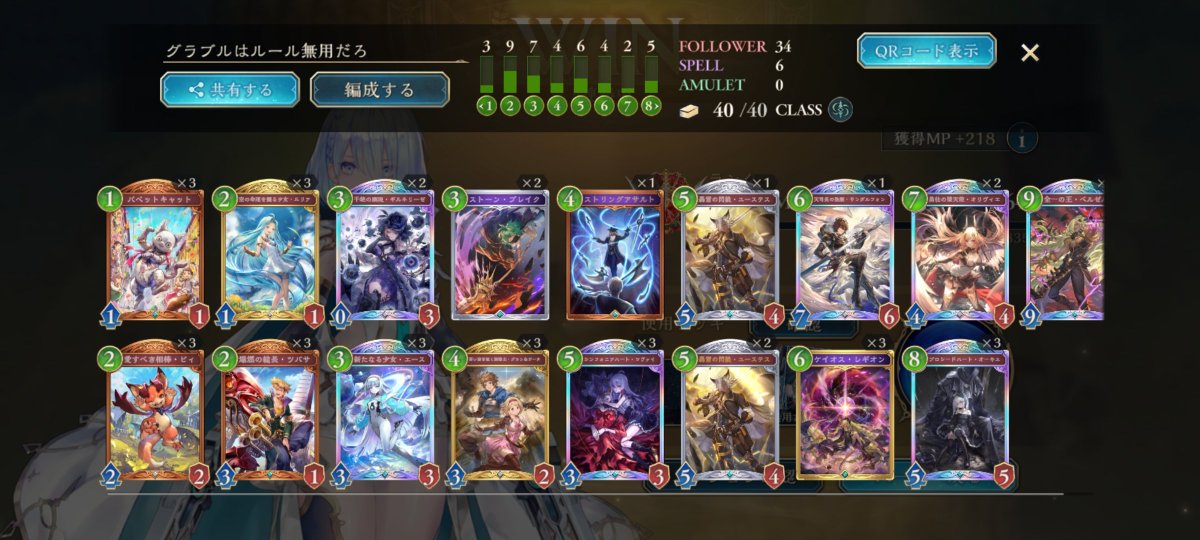 ほーちゃん進化ドラゴン再び改造して回してたら12連勝!!自分の調整はムゲン2枚サンダルフォン2枚がちょうど良いみたい。啓示を抜いてゾーイを2枚採用。身体があるのが偉い。後は相手の面と打ち合えるようにジョエルを採用。オーラ3/3守護は強い。低コストなのでオリヴィエと合体もできる。