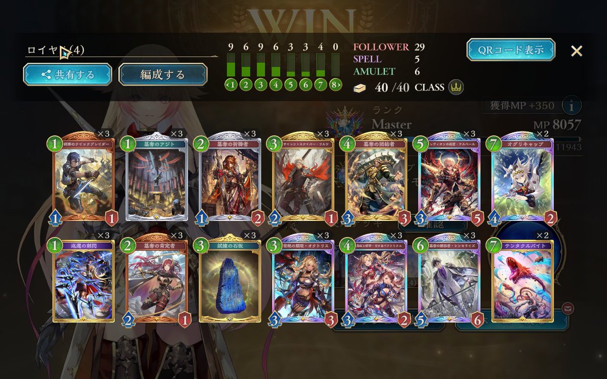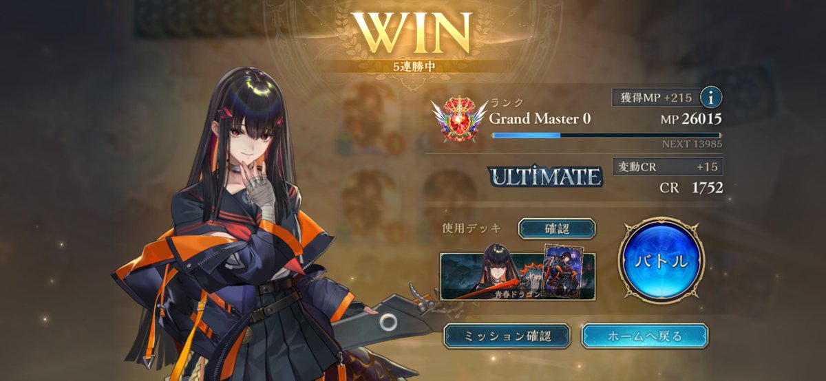 5連勝してドラゴンをアルティメットまで育てた! あまりにもロイヤル多いから今はネプを入れているけど 蒼炎入れたりアジュラ入れたりと色々いじる枠っすね😇 最速でガルミちゃん出すシチュ多くて ゾーイが手札で腐るの多い印象だから、1枚抜いてギルネ増やそうかな~
