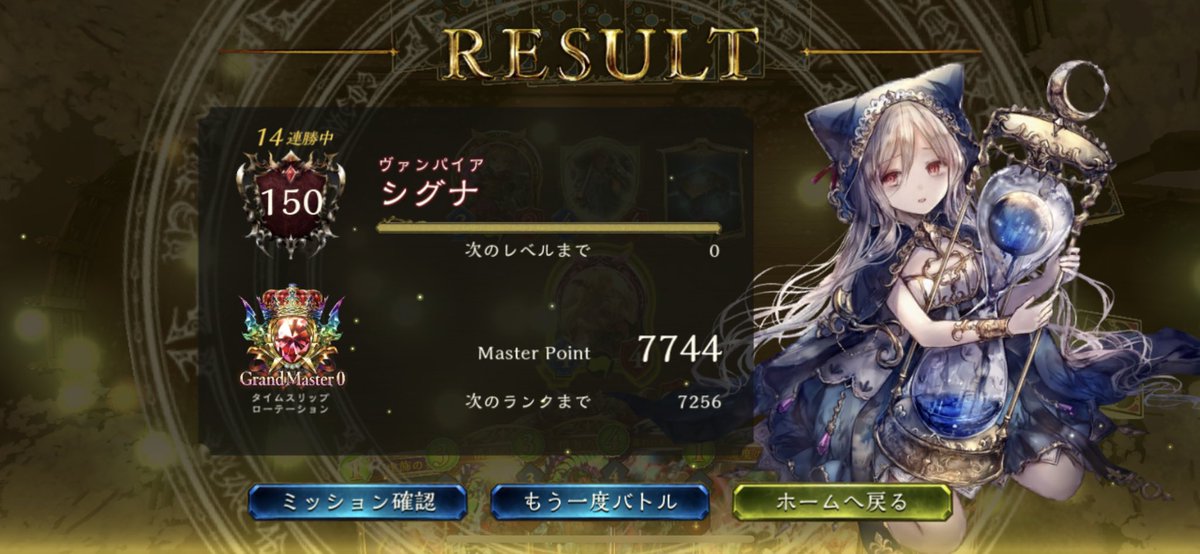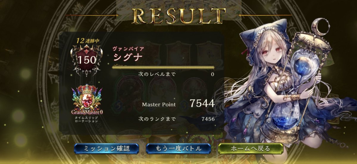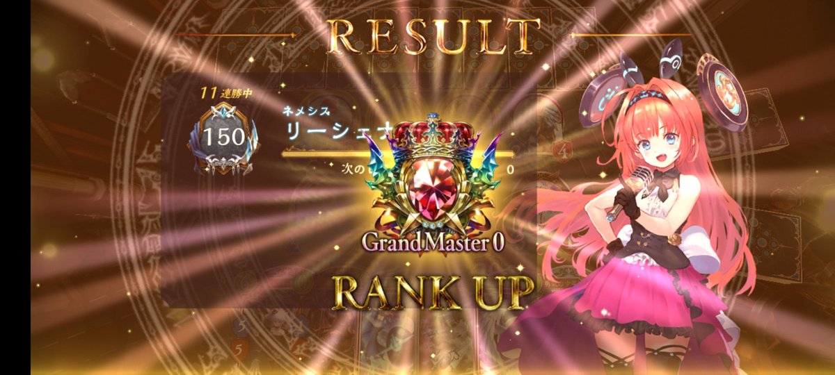 久々の2桁連勝をしてグラマス到達! 使用デッキは普通の狂乱と普通の人形。今期はまあまあサクッと行けたのではないだろうか #シャドバ