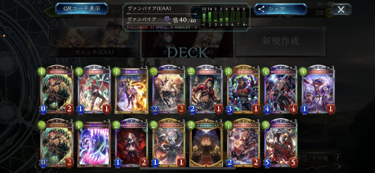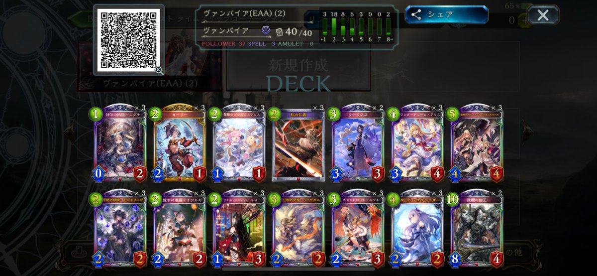 おはようございます☺️狂乱ヴァンプ最高すぎて12連勝🥳この前の連勝記録は超えたね。狂乱ヴァンプで勝ちまくる〜。EAAの狂乱当初全く使ってないからパワーオブパワーすぎて何故使ってなかったんだって感じだ。デッキパワー高いからほとんどのデッキに勝てて気分良すぎてシャドバ楽しい(≧∀≦)