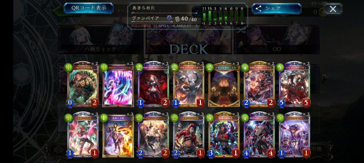 狂乱ミラー後手もらってきついかもーってなったけど勝てて狂乱ヴァンプ12連勝🥳まじで覚醒してる。勝ちすぎて気分いい。デッキの練度もだいぶ高いとは思うし、信じた構築で勝てて感動してる。シャドバ最高🥳🥳