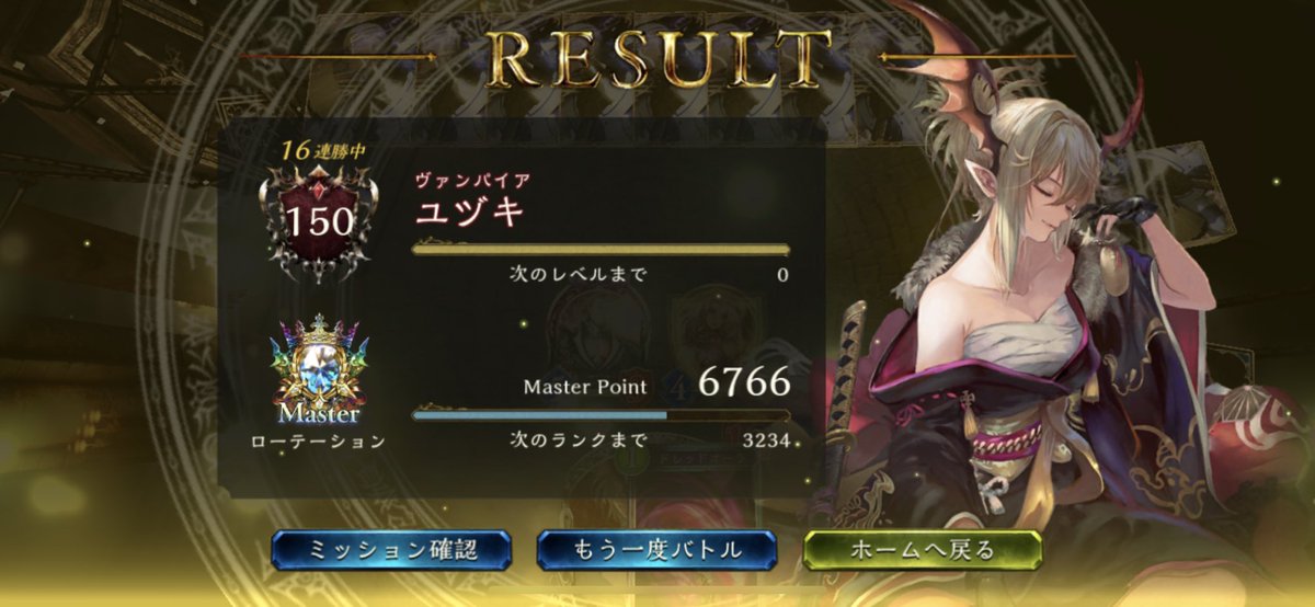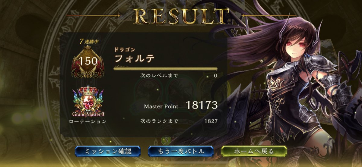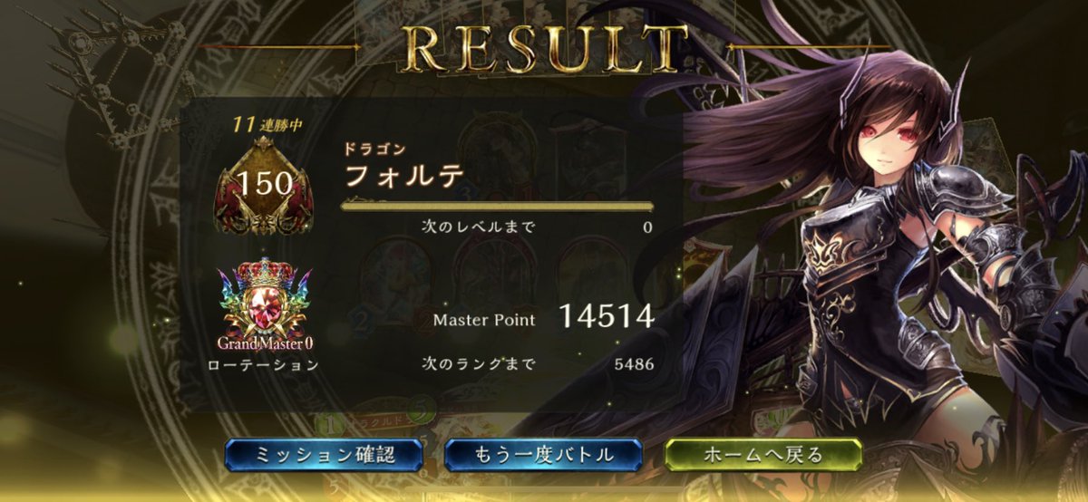 なんとか間に合った! 今日休みにして約3200盛った! 疲れた。。。(lll __ __)バタッ 最後の最後までエズディア入のコンエル!最後はきっちり5連勝(*´ω`*) 勝率で言ったら60~65%ぐらいかな🤔💭 早く進化5回をさせてユピテルを使いまわしてギルゼ待ちw ロイヤルとドラゴンにはかなりの勝率♪♪