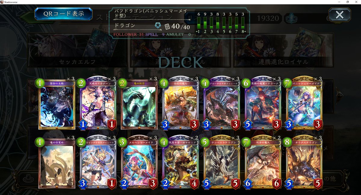 シャドウバース バフドラゴンで8連勝しました。 構築は配信者のあぽろさんが2か月前に出した物と同じになります。 テンペストドラゴンの2/2バフと天威のドラグーンの1/1バフからパニッシュマーメイドを狙います。 回復ビショップなどのコントロールデッキには、無類の強さを誇るので面白いです。