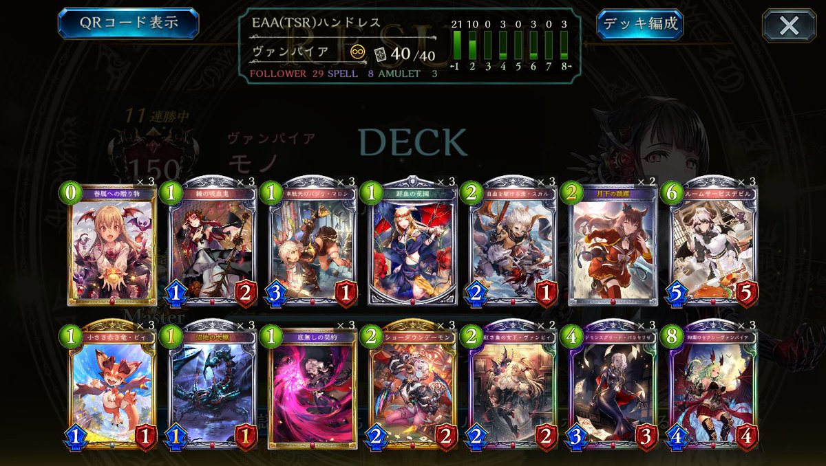無限制熾天使11連 專門打骨骸王&穗澄轉蛋妖(奧伯龍) 打鬼有時有奇效 超越只能擺爛 之後就連敗回0分了….. #shadowverse #無限制 #連勝