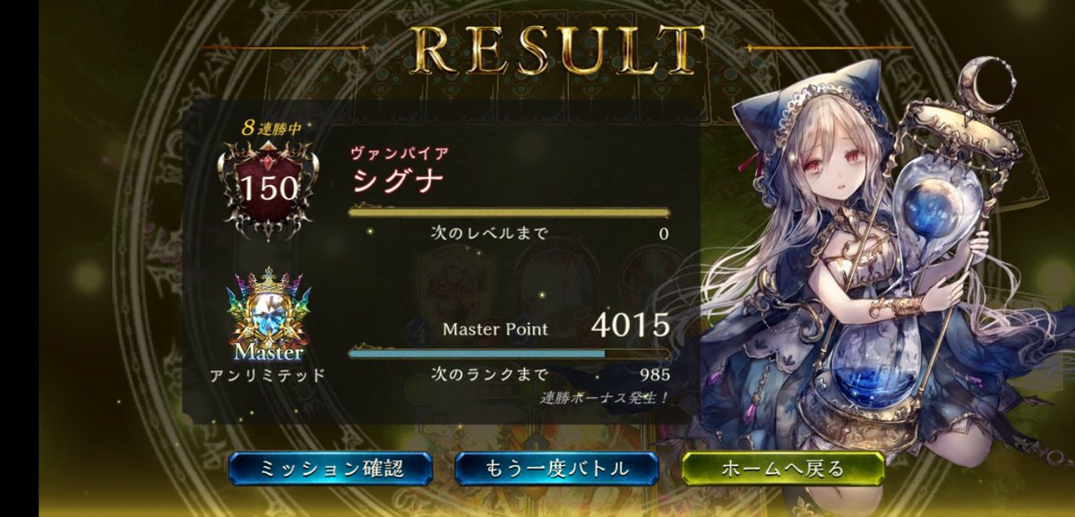 シャドバのアンリミにて、狂乱ヴァンプで8連勝&4連勝‼️ 狂乱ヴでの連勝は、8連勝&6連勝&5連勝&4連勝‼ 戦績は67戦47勝20敗です。 2桁連勝まで惜しかったが、しゃあない。 色んなクラスのデッキいるけど、その中でも超越ウィッチと骸ネクロ&葬送ネクロと復讐ハンドレスヴァンプが多めかな?