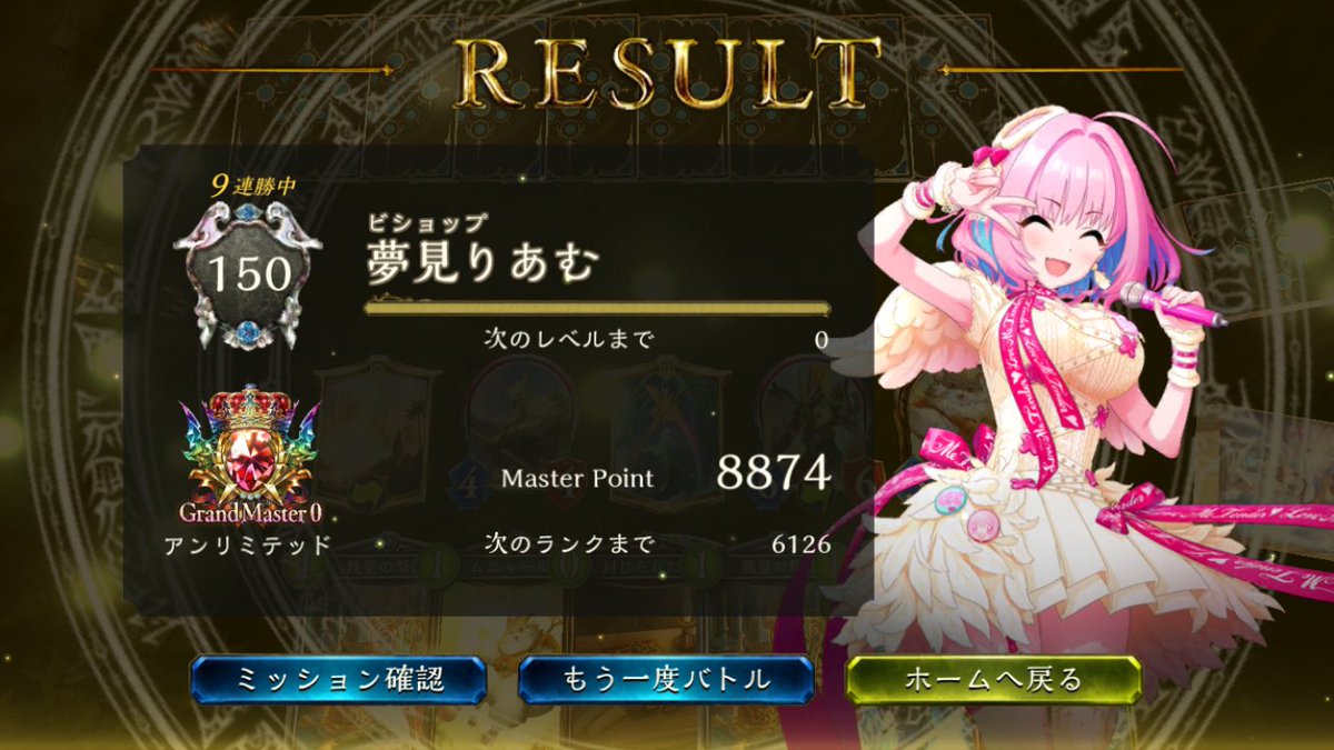 アンリミ ウヌエル型ガルラで9連勝 10連勝賭けたバトルで死ぬほど事故って悔しかった #シャドバ #シャドバ連勝