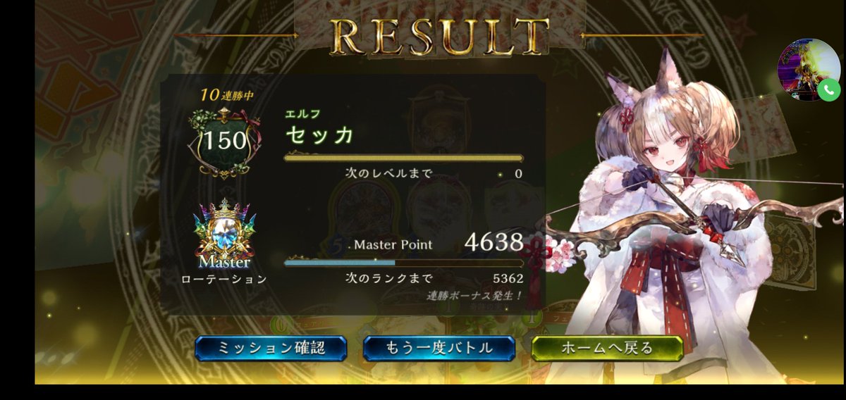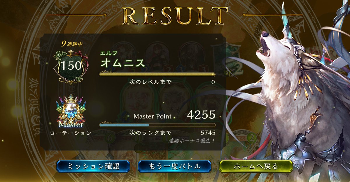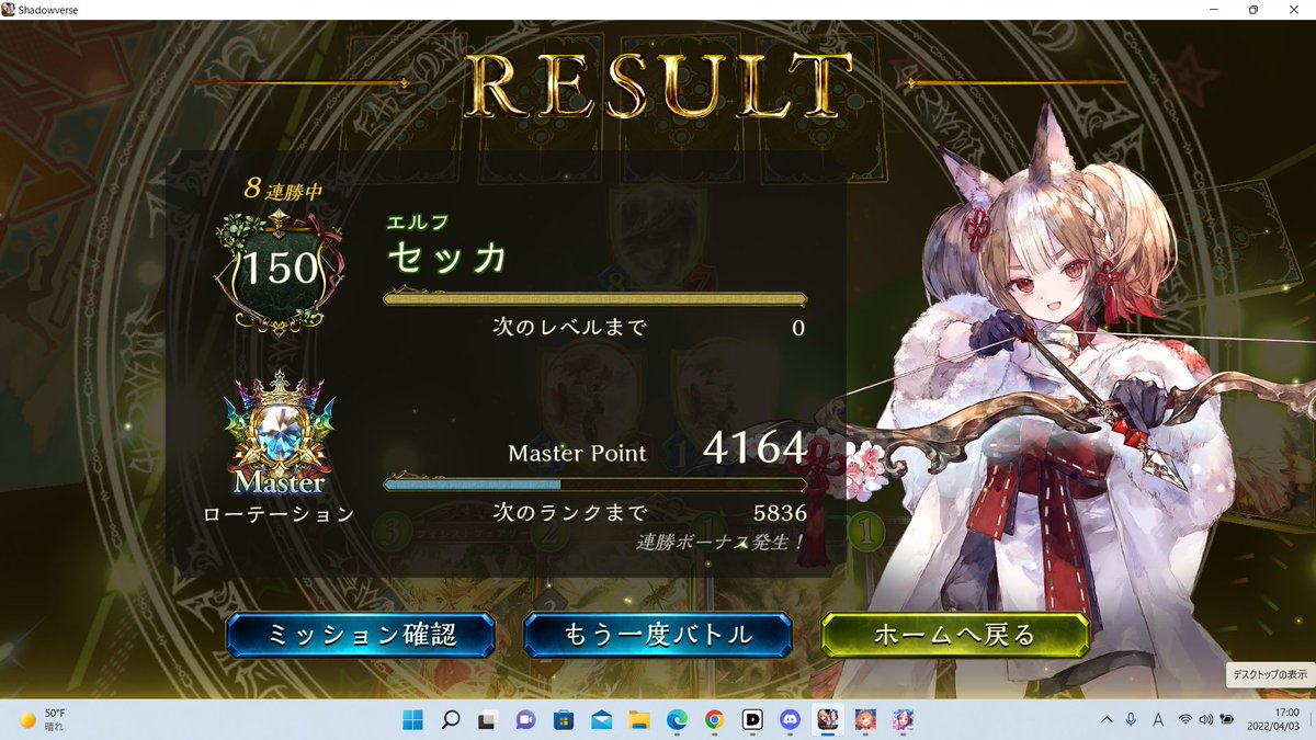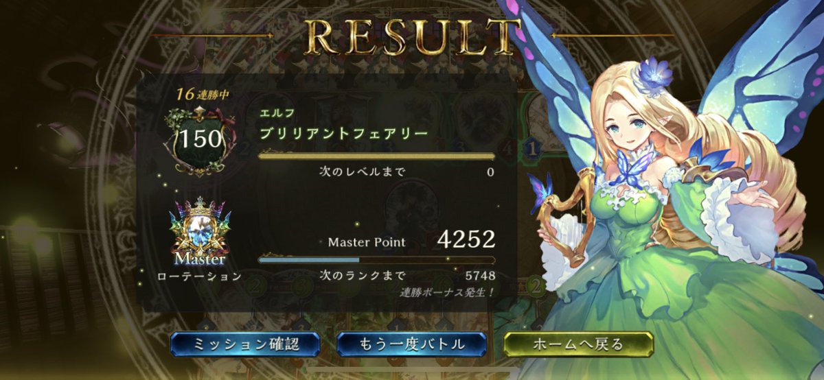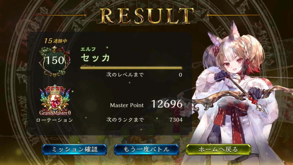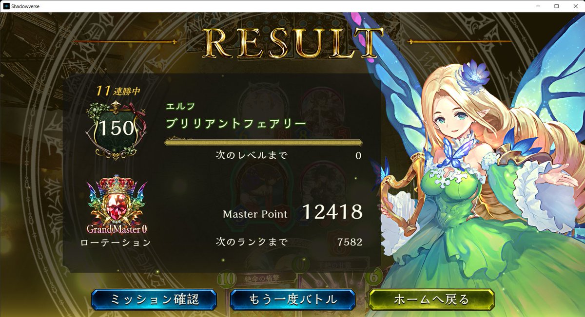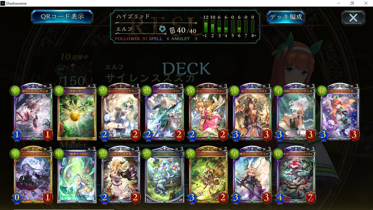 エルフでそこそこ連勝できた! 10連勝までいきたかったけど、最後は混沌にしばかれてしまった… #シャドバ #Shadowverse