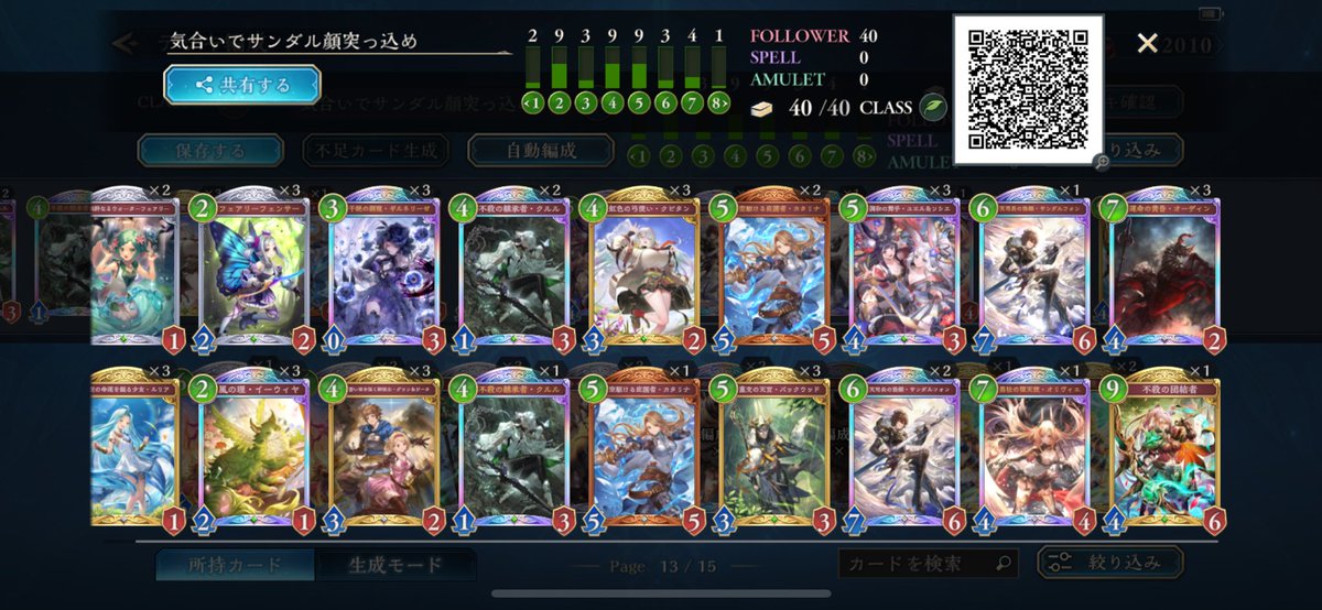 リノ薔薇エルフ感触いいです。9連勝できた。 自由枠にアルフヘイム二枚採用は、ロイヤル対策です。 五ターン目にエクピゼタベアやアルベールなど顔5点防ぐためです。 クルルはかなり感触いいAOEとして試しています、潜伏しつつ、死矢とギルネとの回復シナジーもある。 #シャドバWB