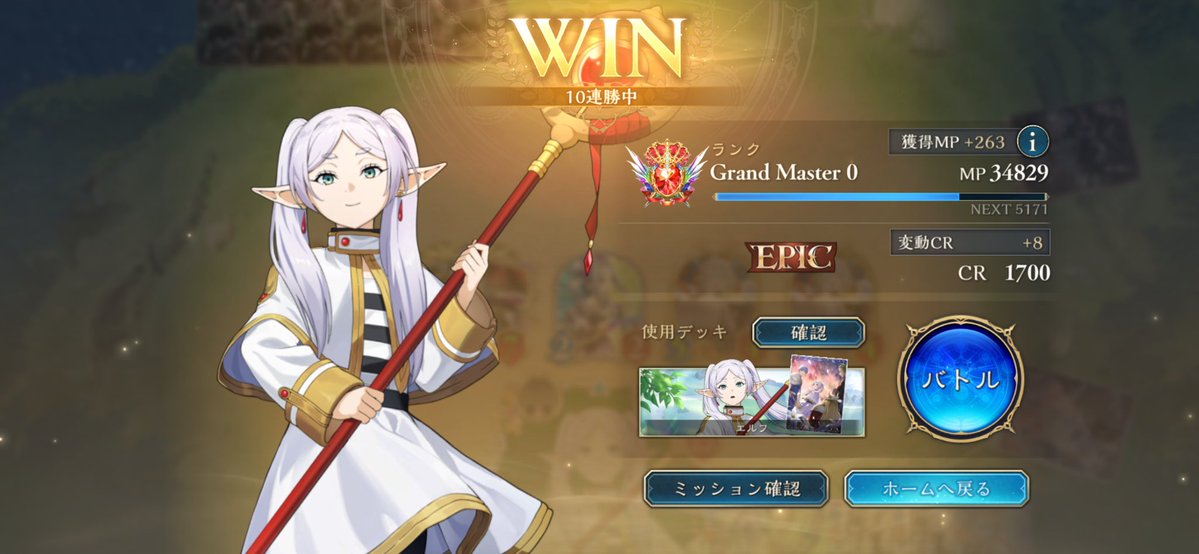 進化テンポエルフ6連勝で、今季1クラス目のEPIC達成‼️ 久しぶりにシャドバやったけど、まだエルフは戦える👍 #シャドバWB #シャドバ勢と繋がりたい