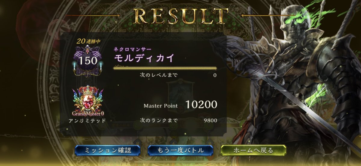 例のアンリミグラマスまで連れて行ってくれた骸ネクロですが 記録は20連勝でストップでした