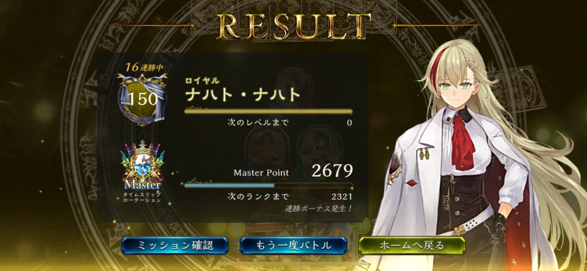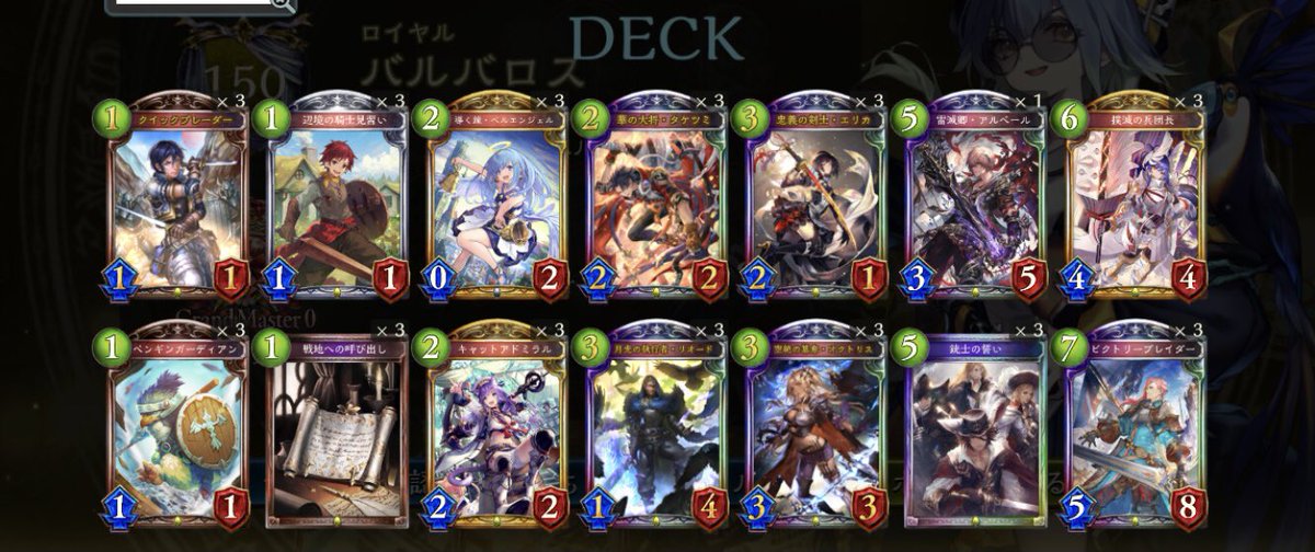 今期もロイヤルでグラマス達成&11連勝〜(継続中) この時期パワカ多くてデッキ組むの悩んで、これ手直し入るなーって思ってたけど(3枚目)、そこまで修正せず3000MP辺りで修正したぐらいだった(2枚目) テンペストスレイヤーがちょいアクセント アルベールとかも入れてぇ… 連勝どこまで伸ばせるかな〜