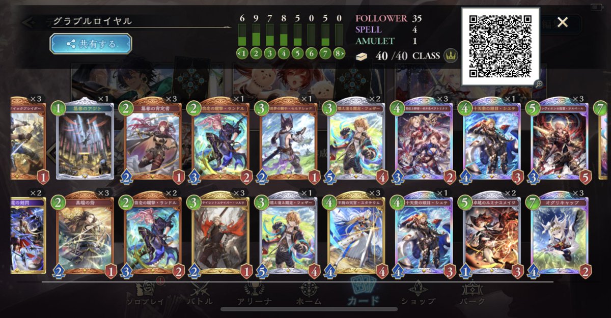 シャドバWB 進化ロイヤルで10連勝しました。 構築は低コスト帯のカードを普段より減らして、アマリア、黄金の騎士、リッター・シュナイトなどを入れています。 序盤の手札事故が怖かったですが、今の所上手く回ってる事が多いです。 チェレッタは財宝ロイヤル対面を意識して採用しています。