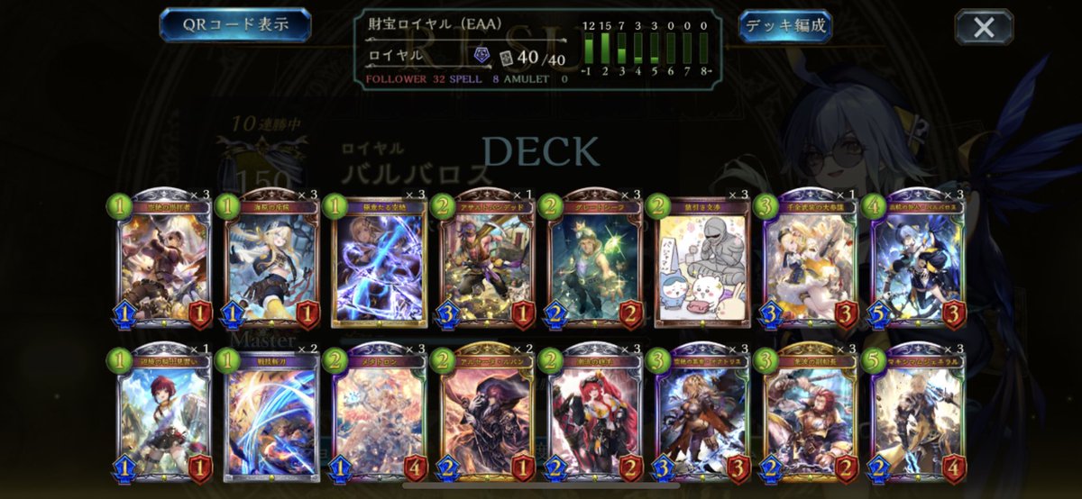 進化連携指揮官ロイヤルで10連勝〜 バイヴカハはバフ役で入れてるけどメイジでEP使わんしウーラノスの方がいいかもしれん レーディエルが守護ぶち抜きとサブフィニッシャーどちらもこなしてくれるから非常に安定感があって強かったね #シャドウバース