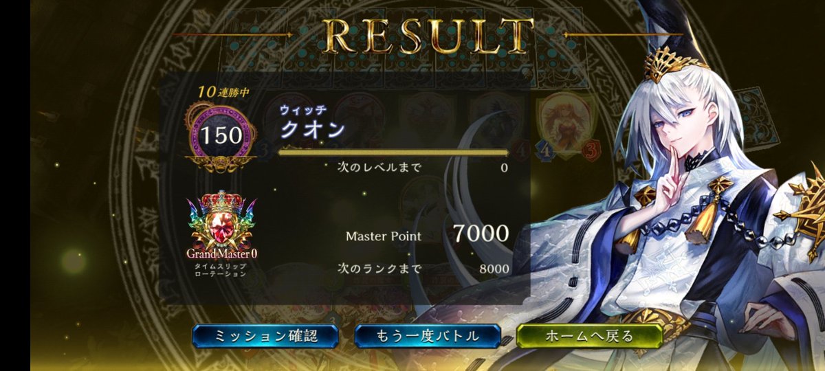 タイムスリップローテーション混沌具現化ウィッチのみでグラマス達成 最高連勝は8連勝とお世辞にも強いとは言えませんが気分転換には良いデッキだと思います #シャドバ
