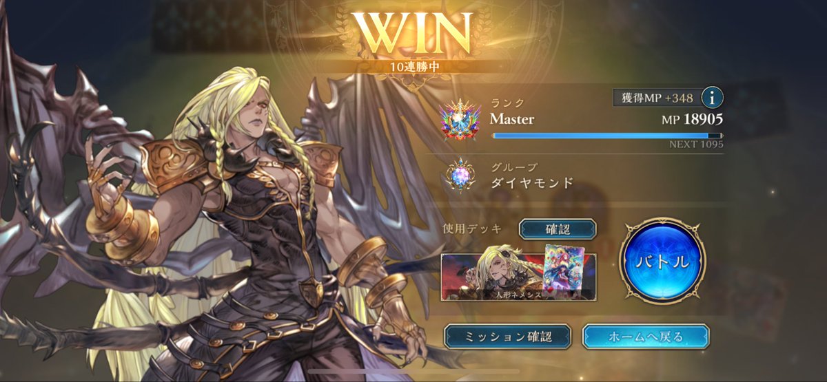 この破壊ネメシスめちゃくちゃ勝てる。13連勝や。 ギルネリーぜとグランジータとルリアの採用枚数は絶対これ。特にギルネは3枚入れるやつはまじでにわかやと思う。 後はドールズシアターが割と優秀。小回りの利いた除去と盤面空の状態でも破壊要因を稼げるのがいいのよ。