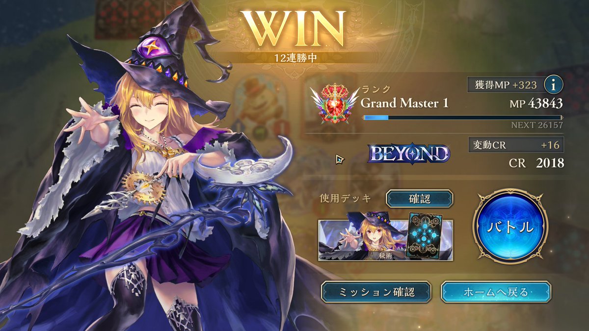 テンポエルフで5連勝してULTIMATE到達!! 虫風花やっぱり強いな レート1200からBEYOND目指す配信してるから良かったら見に来てね! https://t.co/WU9vM813Z4 #シャドバ #エルフ