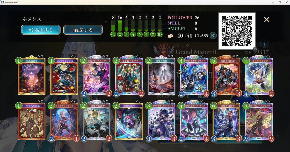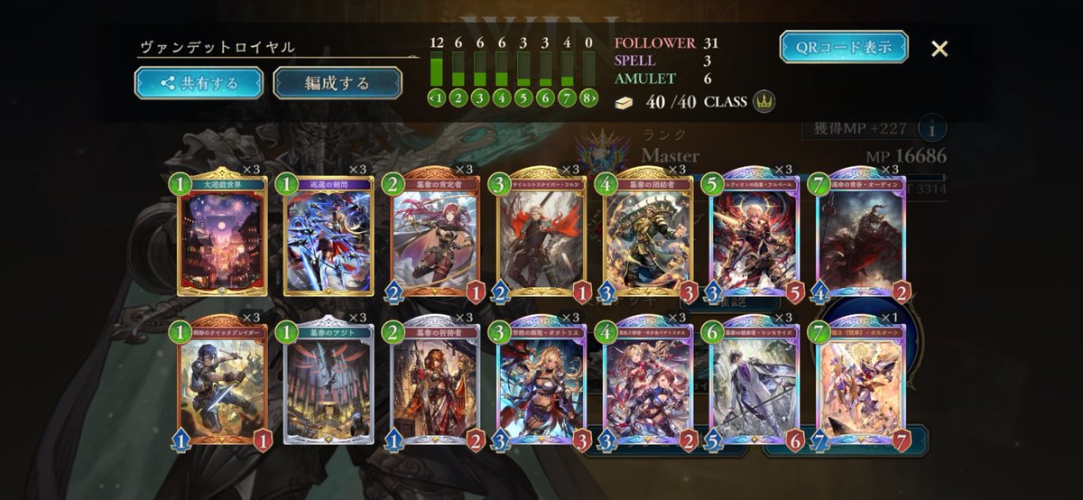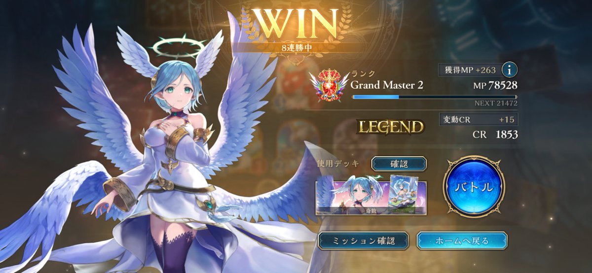 アグロイでグラマス2達成!道中レジェンド達成&6連勝までは行けました、CR下がったけど 2602 14 02 シャドバ(シャドビヨ MP63000~)
