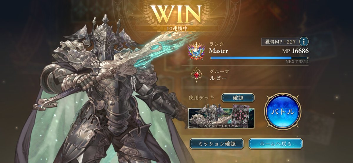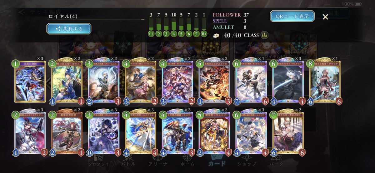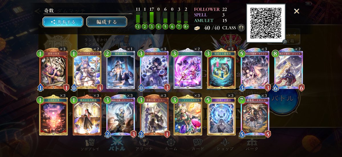 CRちょっと溶かしてたけどリスト変えて7連勝してEPIC舞い戻ってまいりました グランジータか奏楽か決めきれない優柔不断さが出ている #シャドバWB #ほーちゃんドラゴン