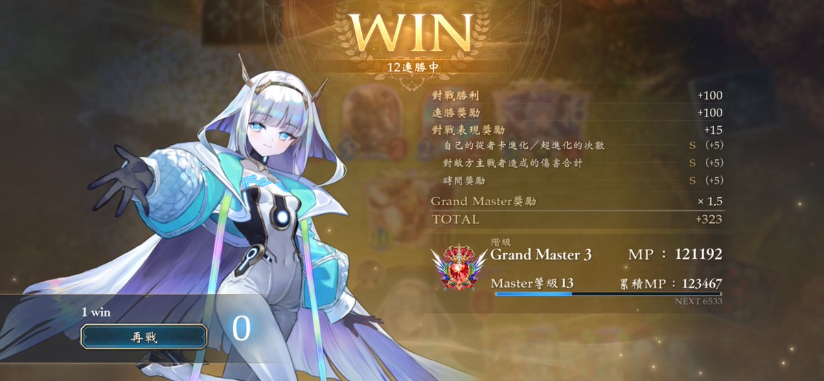 久々の10連勝。最近ほーちゃんの勝率が低迷していたのでフツーの疾走ドラゴン使ってました。ただどうも私は同じコスト7ならネプチューンよりウィルナスの方が性に合っているらしい。