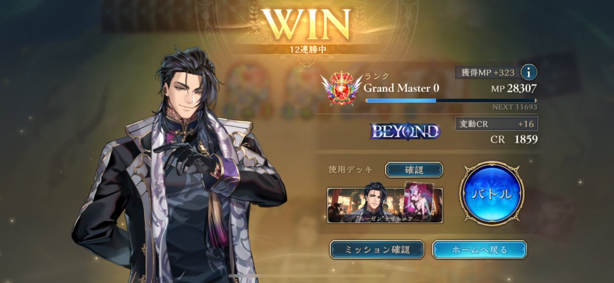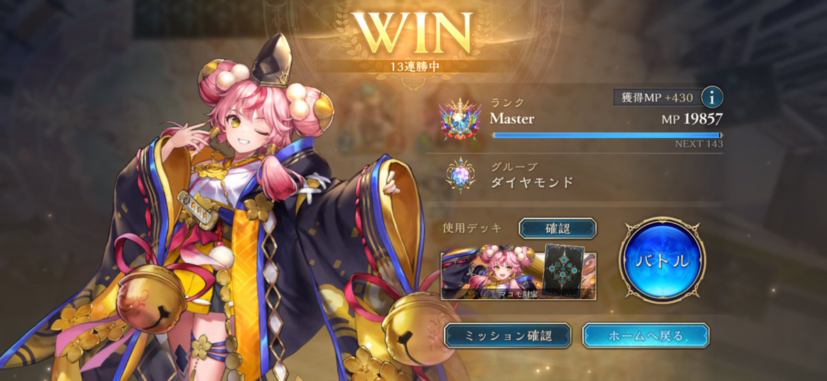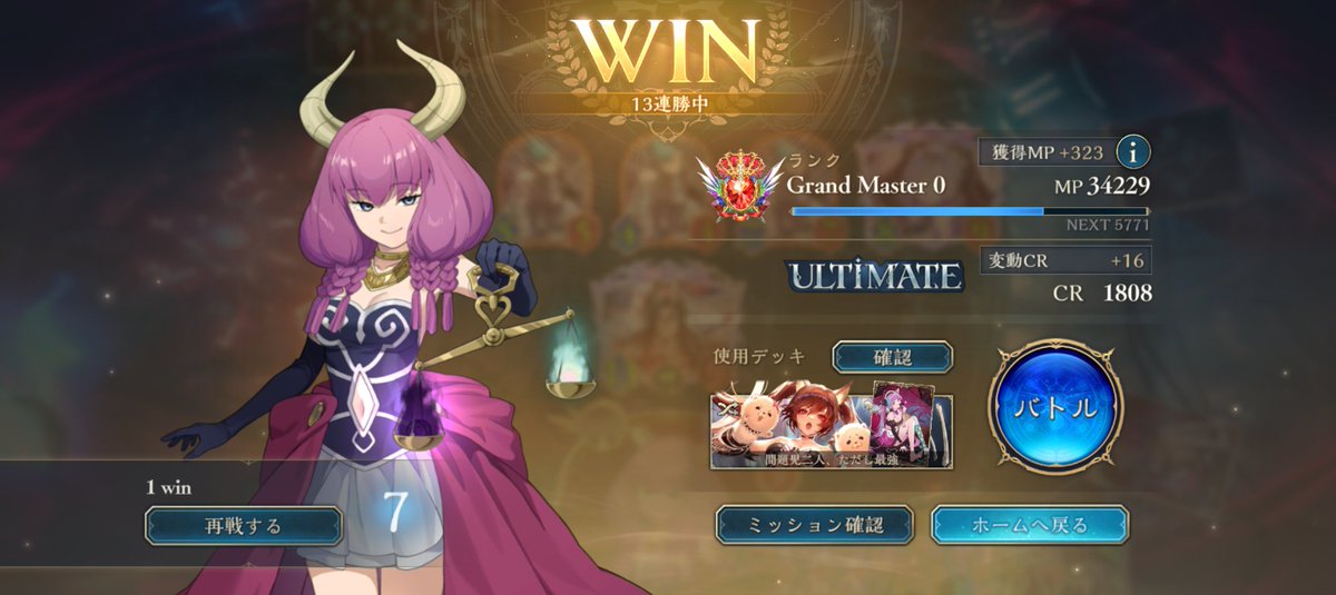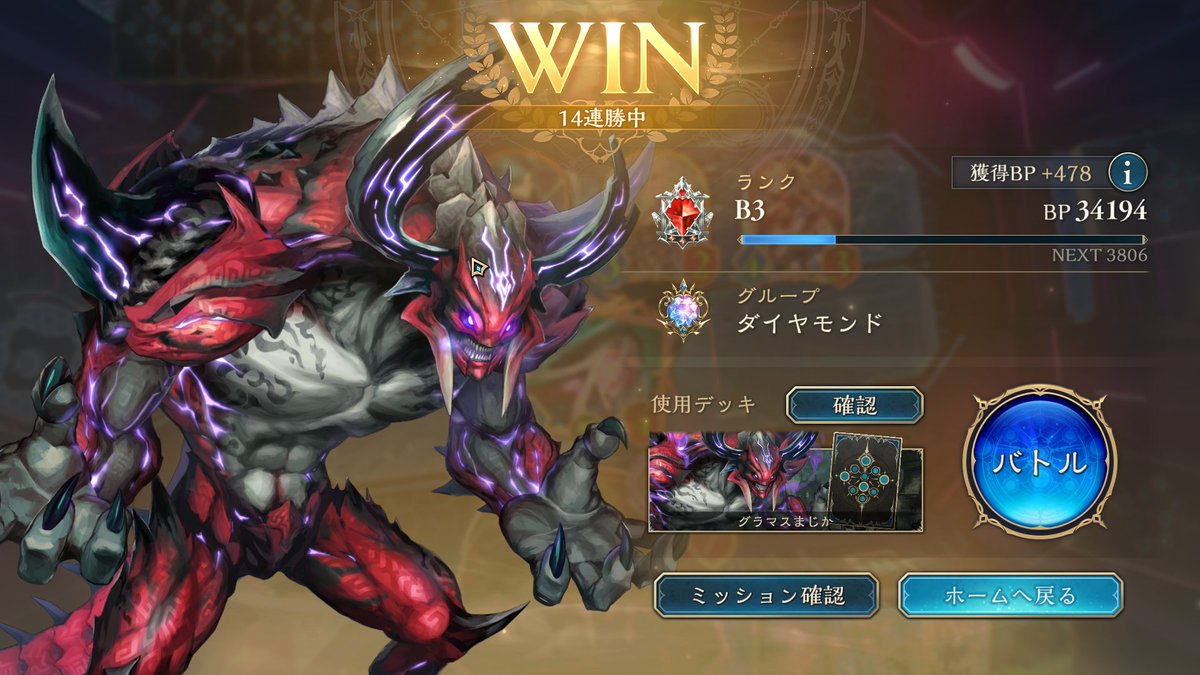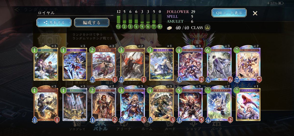 進化エルフ10連勝で昇格戦から負けて2連勝でグラマス イーウィヤ生成してないけど1回しかイーウィヤだったらなという場面しかなかったからそんなに問題は無いかな 途中からエンハロイヤルが駆逐されてミルティオナイトメアだらけになって快適になってた #シャドバWB