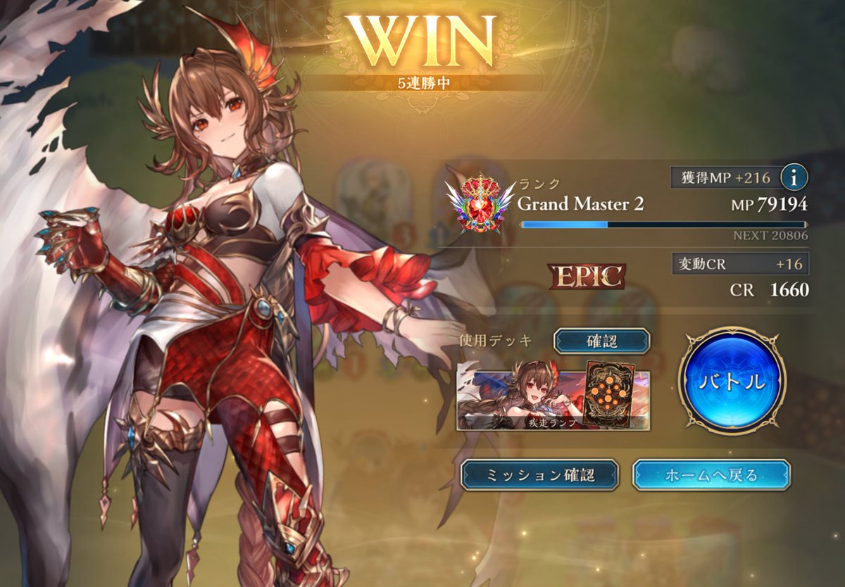 シャドバ、アグロイヤルで14連勝して財宝修行で下がりに下がったCRを原点まで復旧するなど。一応CR1400前後のメタを考慮してデッキは組んだつもりだけど、ここまでうまくいくとは思わなんだ。