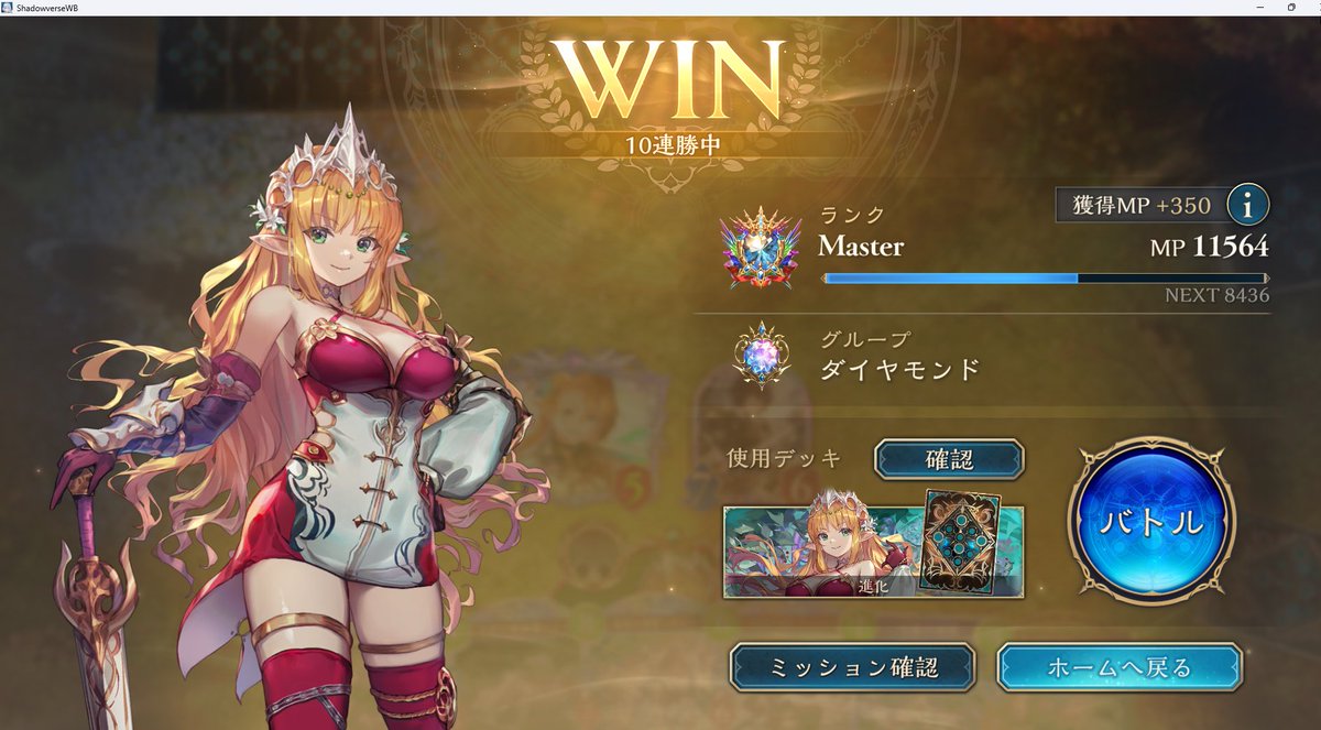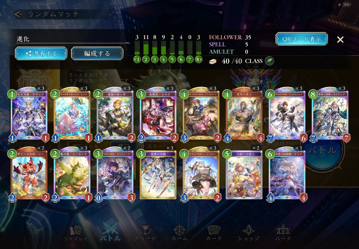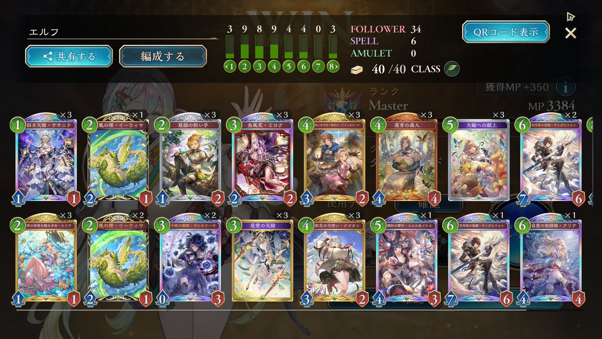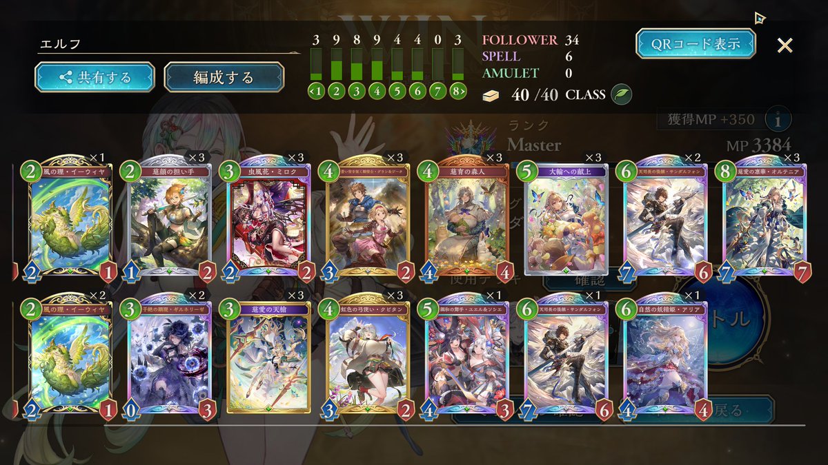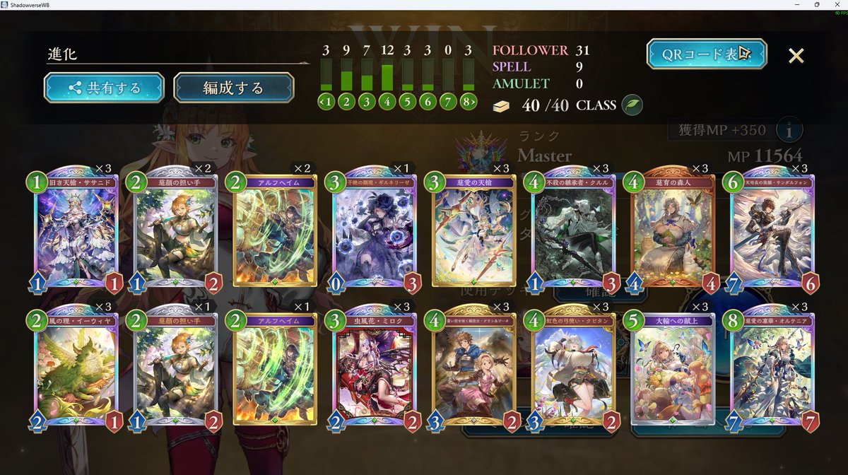 進化エルフメインでグラマスいけたー!! 14連勝したり10連勝以上結構できたので 勝率高い状態でいけました! エルフあんまり触ったことない俺でも楽しくつかえたし強くておすすめなんでみんなも使ってみてください!