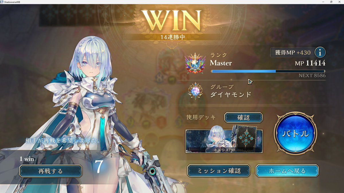 アグロナイトメアで14連勝 ウィッチ対面は勝率100%でした ウィッチナーフされるらしいけど 使って見てくれ あとでまた動画にします #シャドバWB