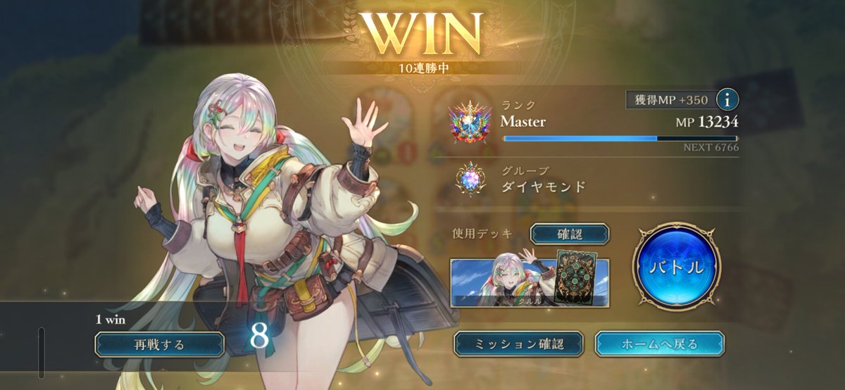 11連勝でビヨンド到着! 他クラス留学で弱点見てからは 良い仕上がりです モード達成要求が7、8ターンなので 手札入れ替えながらのゲーム進行が めちゃくちゃムズいね今期! 前半苦しんだけど僕が下手な だけだったみたい、全然強えっす ハンド沢山入れ替える分後半の バカ盤面連打が安定してるのね