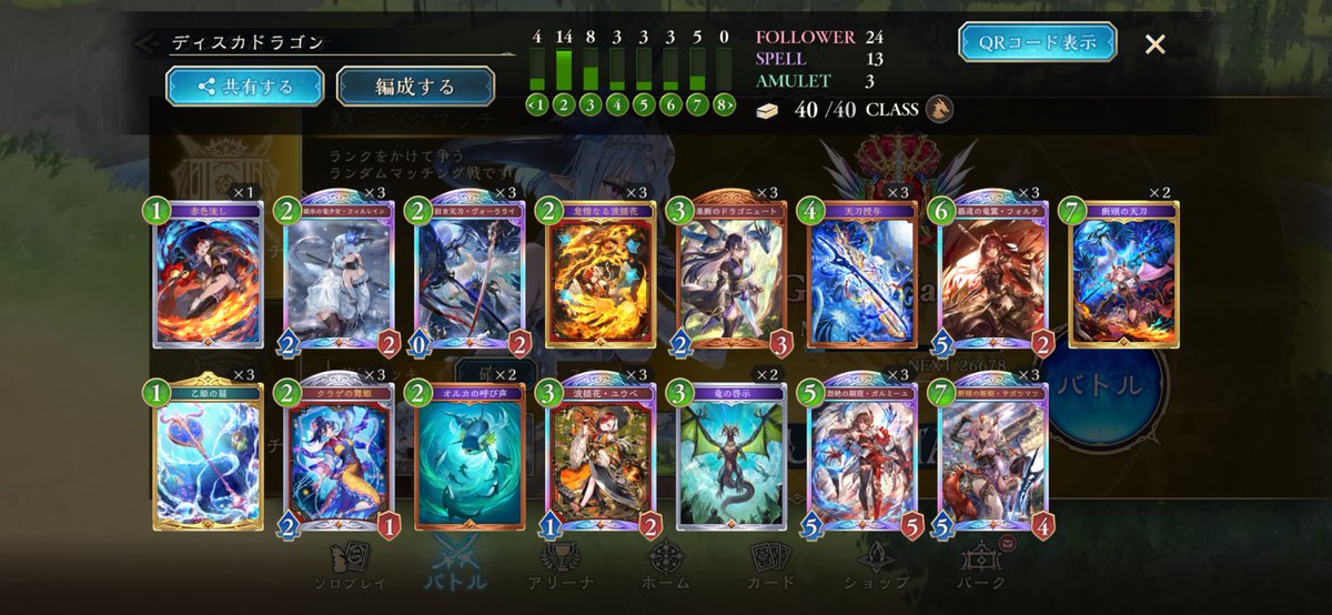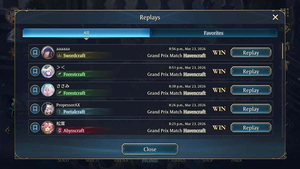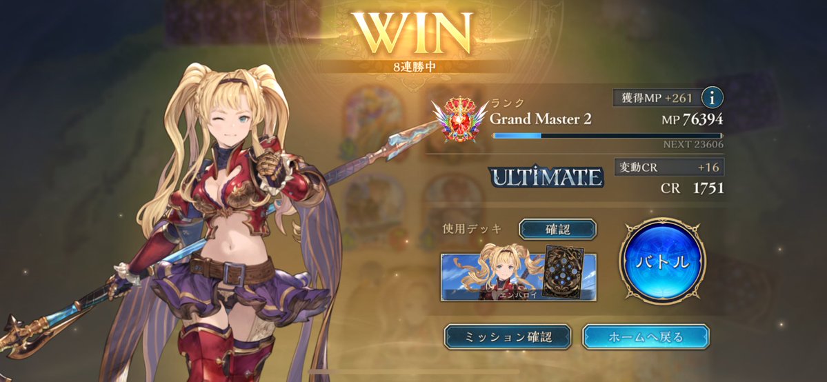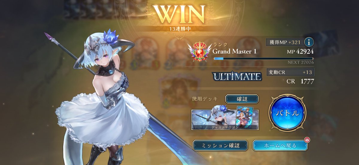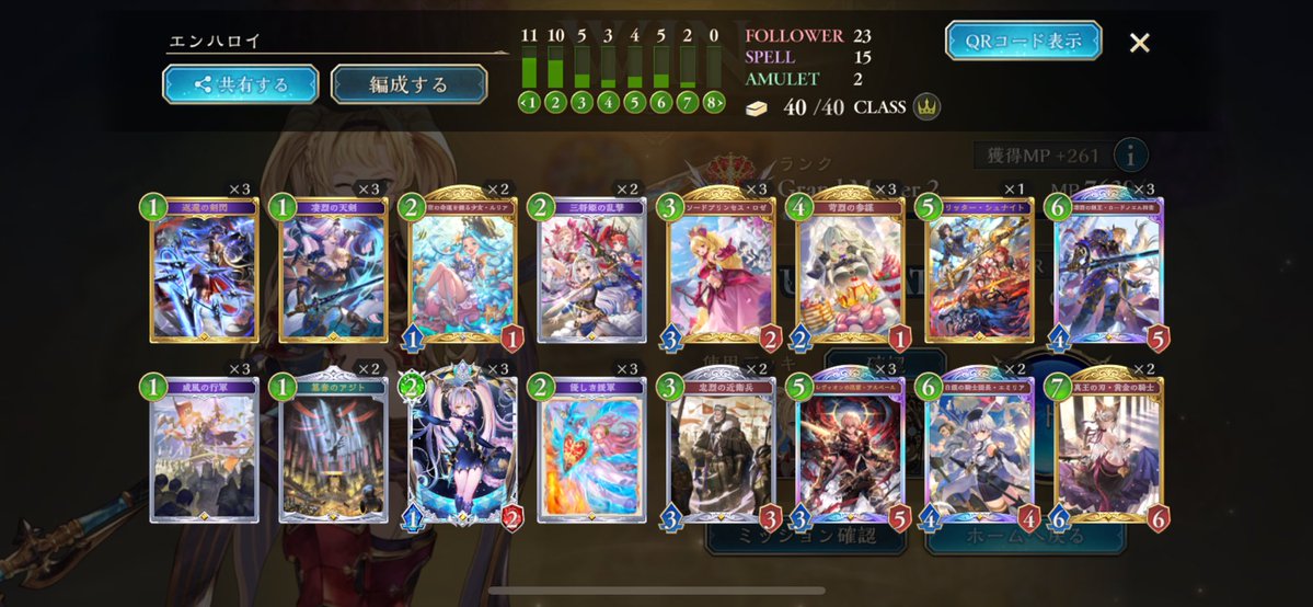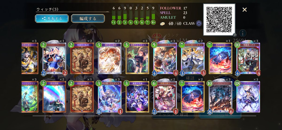 序盤やってなかったから遅いけどスペルウィッチでグラマス リプレイある範囲だけで20勝5負で、トータルでも7.8割 連勝もミルティオとビショ避けたら結構できる #シャドバWB