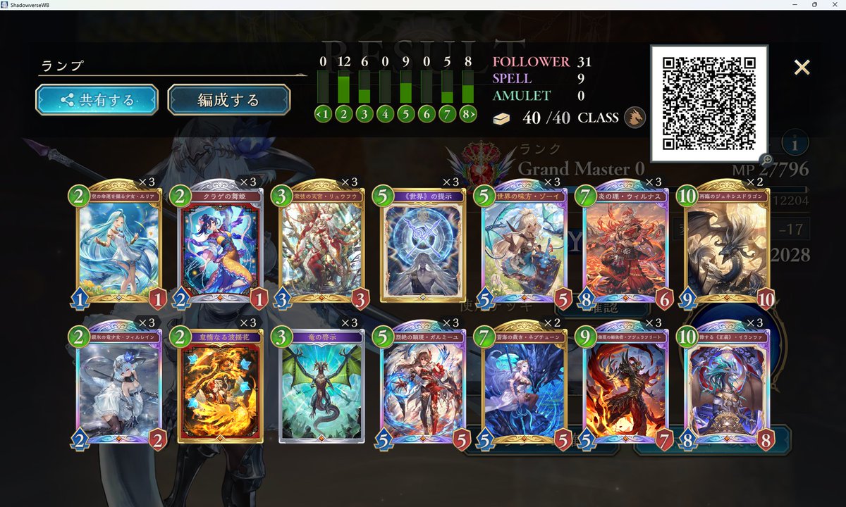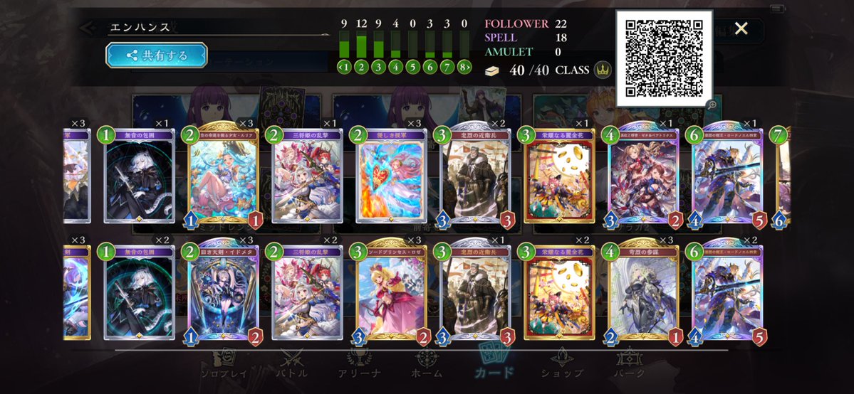 マスター、ダイヤ帯最高16連勝、勝率の高いロイヤルデッキ3つ、まとめて紹介。 環境見つつ差し替え、使い分けてみて。 勝ち悩んでる人、デッキ悩んでる人よかったら使ってみて。 ウィッチ/ドラゴン/ネメシス/エルフ/ナイトメア/ビショップ 全クラス対応可 マリガン、プレイングはリプにて