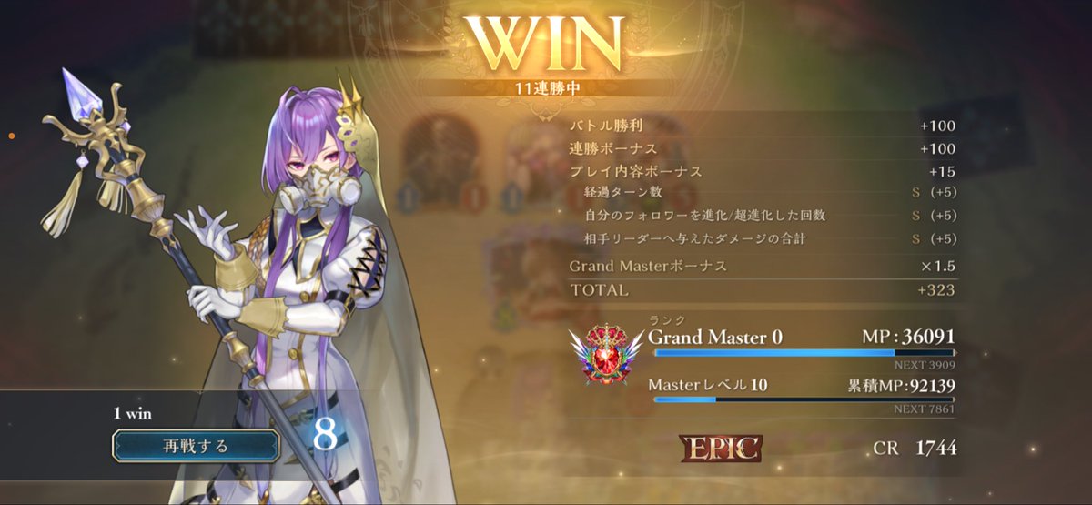 進化テンポエルフ6連勝で、今季1クラス目のEPIC達成‼️ 久しぶりにシャドバやったけど、まだエルフは戦える👍 #シャドバWB #シャドバ勢と繋がりたい