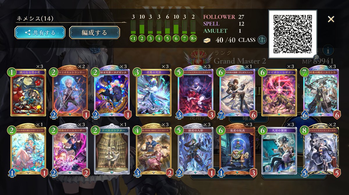 大賽五連勝!! 這套牌很需要右手,開局換牌全部找前期節奏壓場,後期靠聖德芬、混沌軍勢和奧契絲斬殺。 天梯勝率有個6~8成,對到每套牌只要夠掏都能贏。 231數量可以再調整。 #ShadowverseWorldBeyond