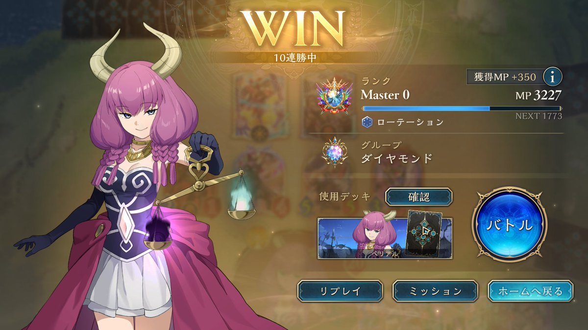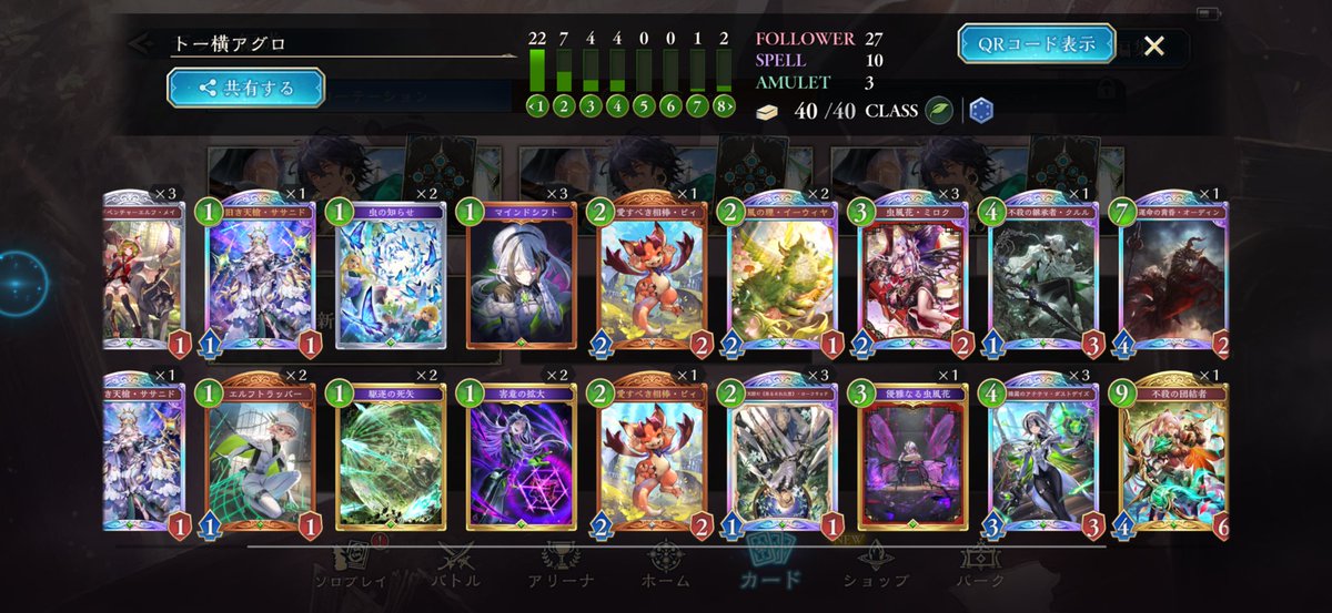進化エルフで14連勝! ナイトメアとかロイヤルの横展開に対してミロクマルルが強いしドラゴンの威圧に対しては天槍やクピタンが強くて対応力があって使いやすかったです ヘイレムハニィは着地できればかなり強くて良いカードでした #シャドバWB