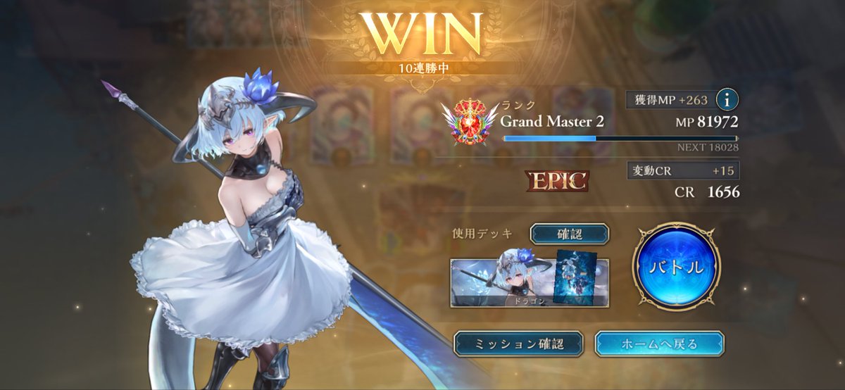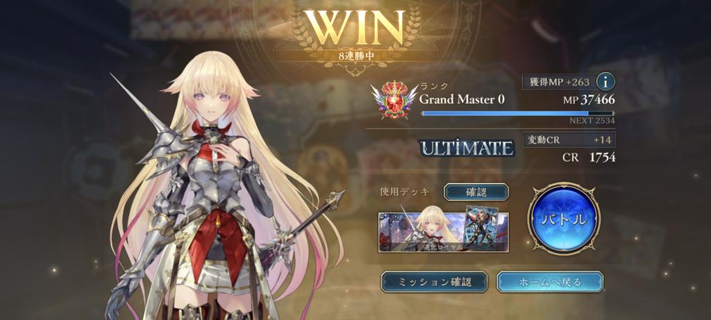 モチベ回復中 久しぶりにCR1750超えた 良さげな進化ロイヤルを少しだけイジったのを使ってる 明日10連勝チャレンジする〜 #シャドバ #シャドバWB